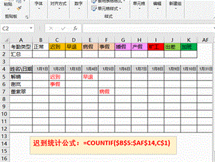 那么可以添加条件格式,考勤状态和对应的统计结果颜色设置成一样的,还可以添加数据条。