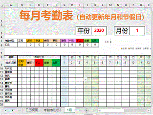 考勤表的主要功能有:记录某人每天的考勤状态,统计每周/月/年的考勤状态。