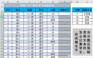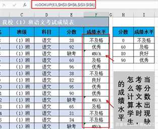 最佳答案这节课我们会学习两个简单便捷的方法,但在介绍之前,我们首先通过一个区间引用公式将设置好的分数段和水平等级进行匹配。匹配的公式比较多,这里作者使用了常用的lookup函数,公式为:=LOOKUP(E3,$H$3:$H$6,$I$3:$I$6)但是可以看到结果中当分数为“缺考”时,计算结果出现了错误。如......