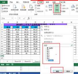 步骤2、根据辅助列筛选非空值,即鼠标放在H2单元格的时候,点击菜单的【数据】—【筛选】,点击辅助列右下角的下拉三角形,去掉“空白”前面的勾选,然后点【确定】,如下图: