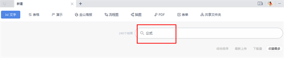 点击【文件】,再点击【新建】,然后在搜索框输入【公式】,然后各式各样的公式就都出来啦!