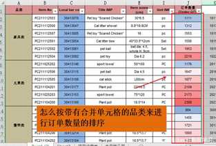 这个表格中品类列下有合并单元格,那么怎么按照这些合并单元格的品类来排序它的订单数量。这个问题其实需要一些技巧,提不上什么难度。