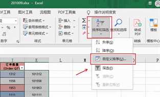 选择好要排序的区域后,在功能区找到排序——自定义排序。