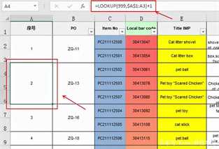 这个函数公式与之前两种略有不同,需要先输入第一个单元格的序号,即1.然后在下一个单元格中输入公式:=LOOKUP(999,$A$1:A3)+1