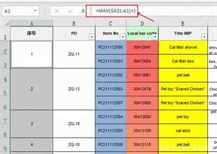 它的含义容易理解,max函数返回$A$1:A1区域中最大的值,这里A1单元格是“序号”,没有数值,结果为0,加上1便得到第一个单元格的序号。
