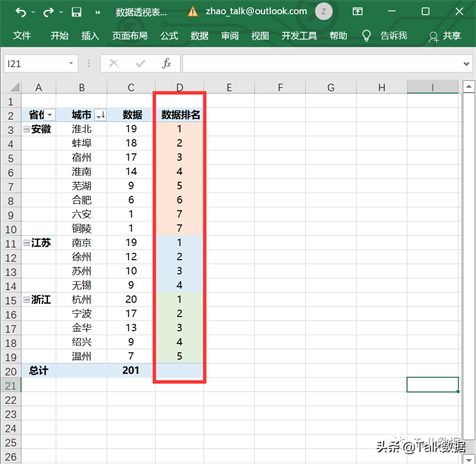 今天首先要分享的是Excel中利用数据透视表获取数据排名,如下图所示: