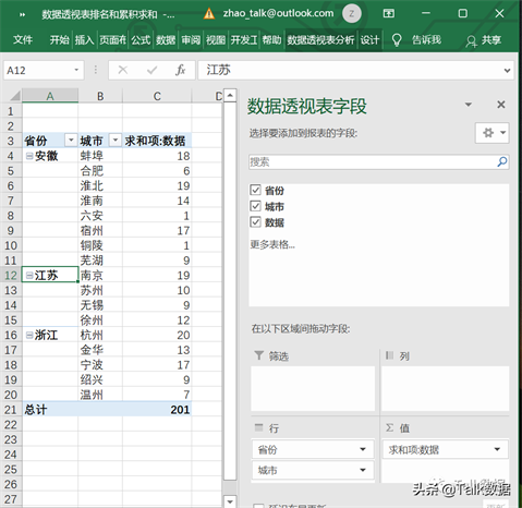 第二步,需要将“数据”字段拉到值内,这时的效果如下: