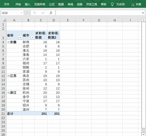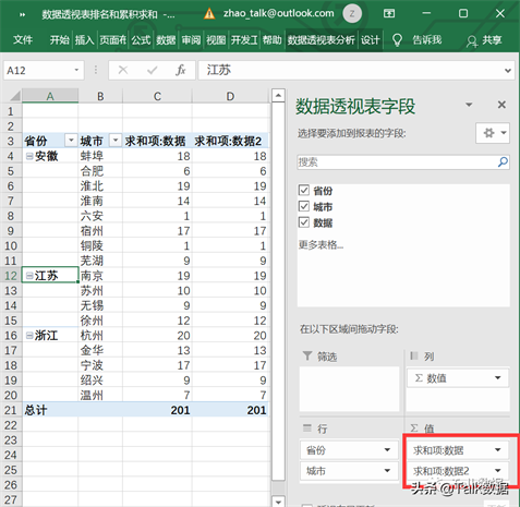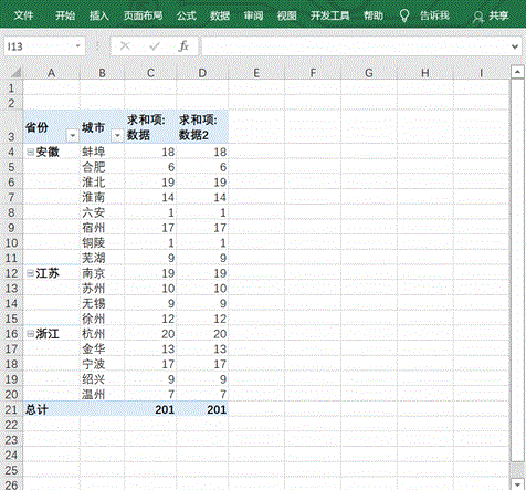 选中“数据2”,点击鼠标右键,选择值显示方式,按某一字段汇总。