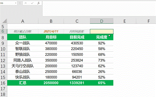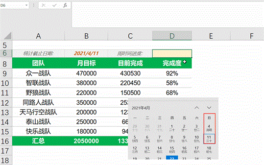 Excel年进度案例