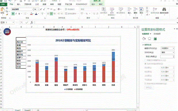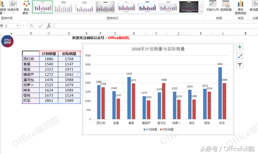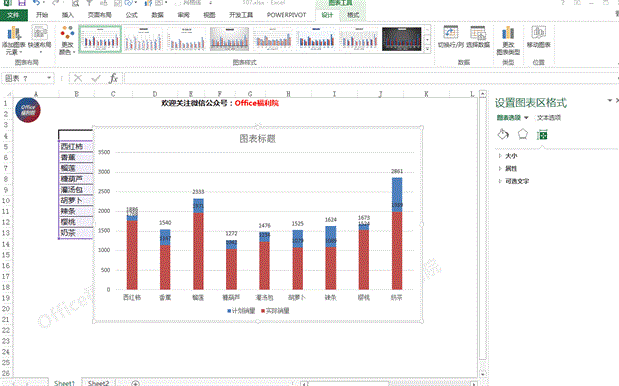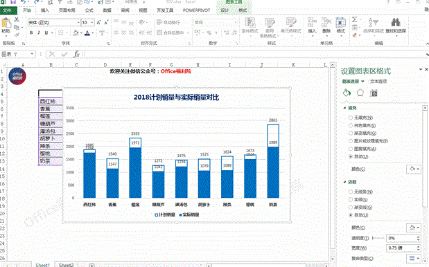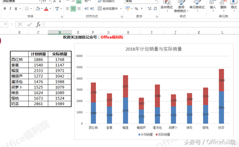 此时看到,蓝色部分代表着计划销量,红色部分代表着实际销量。