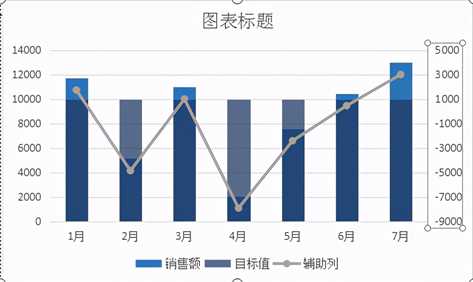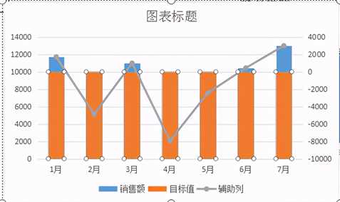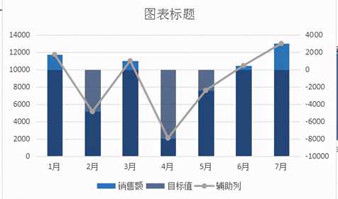 最佳答案在原始数据基础上,增加辅助列,输入公式:“=“销售额”-“目标值”。选中数据,插入—全部图表—柱形图。选中图表,右键—更改图表类型,辅助列更改为”带有数据标记的折线图”,并勾选”次坐标轴。选中目标值系列,快捷键”Ctrl+1″,系列,系列重......