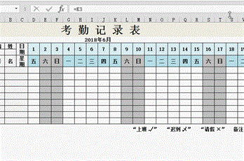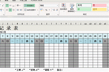 在记录考勤时,对一些特殊的项目也可以自动变换颜色,如输入请假符号×时单元格自动变红色: