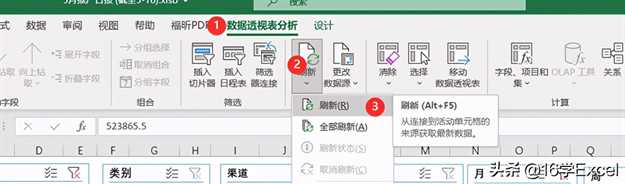 2.手动刷新:利用数据透视表分析功能中的刷新功能