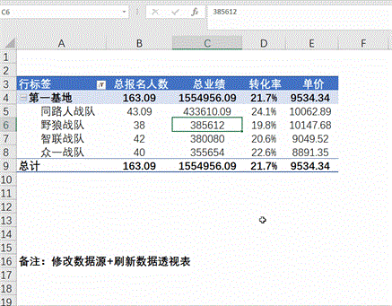 1.手动刷新:点击透视表任意单元格,通过菜单栏数据-全部刷新(Ctrl+Alt+F5)