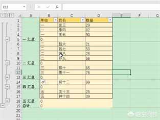 合并单元格后,可以直接筛选出各个年级的学生情况。可以使用offset、index、sumif等多个函数引用,应根据自己的数据具体分析。
