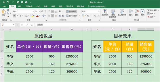 效果如下图所示,下图工作表中,左边是原始表格,右边是调整后的表格。原始表格中用紫色底纹突出显示的单元格内容,在右边表格中统一进行了换行处理,所有带括号的单位(元/台)、(台)、(元)统一放置到了同一单元格中的第二行。