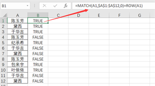 注意:如果是第一次出现的,利用MATCH函数查找的位置就是对应的行号,如果不是则会出现FALSE。
