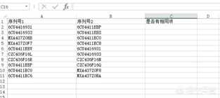 我们可以拿B列中的每一个值到A列中去查找,如果找得到,就说明有相同项,否则就没有相同项。