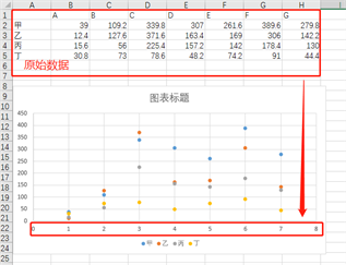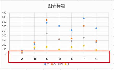 有时候我们需要横坐标展示文字内容, 怎么更改呢,今天教大家通过添加文本框,将散点图的横坐标设置为文字内容,五步即可搞定: