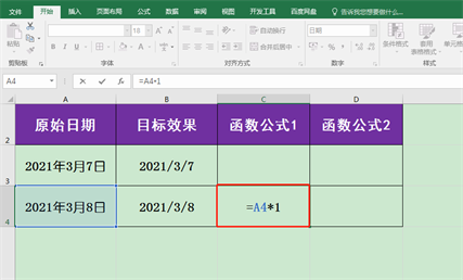 选中C4单元格,输入公式=A4*1,按回车键确认公式就可以得到我们想要的短日期。