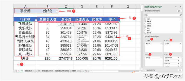 备注1:如下图,透视表对应的范围如下: