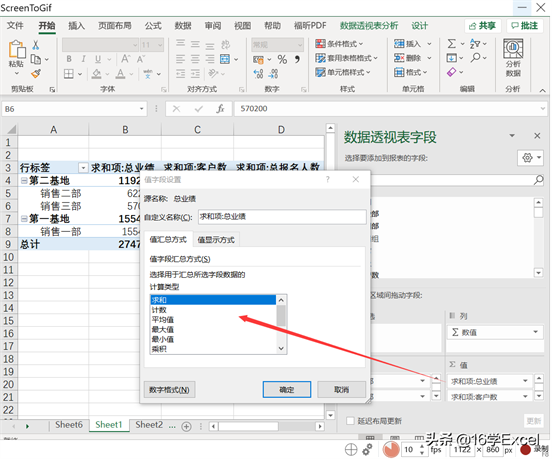 备注2:在选值字段的时通过点击鼠标左键设置“值字段设置”,可以选择求和,计数,平均值等等(数值格式默认是求和,文体格式默认计数)