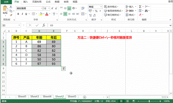 方法二:快捷键Ctrl+\一秒核对数据差异