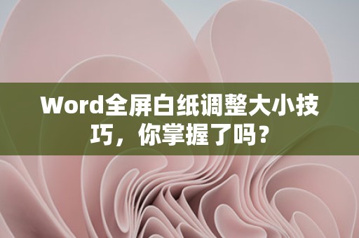 掌握Word全屏白纸大小的调整技巧,可以让您的文档编辑更加高效,通过以上方法,您可以轻松地根据个人需求调整白纸大小,提升写作体验。