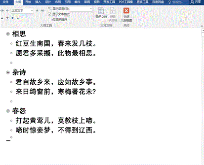 在【大纲视图】中用【Ctrl+鼠标左键】选中所有标题,将它设置为【1级】。