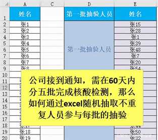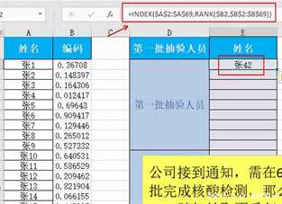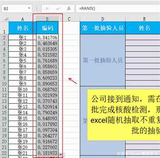 在上图中,已知公司员工姓名,后续将通过一系列操作随机抽取不重复的人员去参加核检。