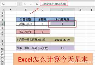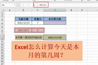 如果不看日历,要通过excel来计算今天是本月的第几周,该怎么办?