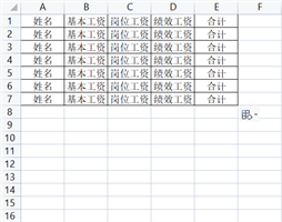 首先看下,我们有7个人的工资哈,新建一个sheet,在单元格中复制粘贴标题,7行,就像下面这样