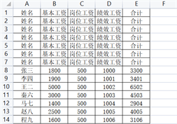 我们要把工资表做成一行标题一行工资数据的形式,如何处理呢?
