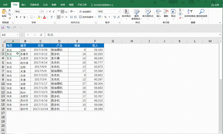 当我们在excel中数据太多,想要快速选择数据区域的时候,我们可以使用快捷键Ctrl+Shift+方向键,首先鼠标放在A1单元格按快捷键Ctrl+Shift+↓ 可快速选择下面连续的数据区域,根据自己需求来更换方向键箭头。