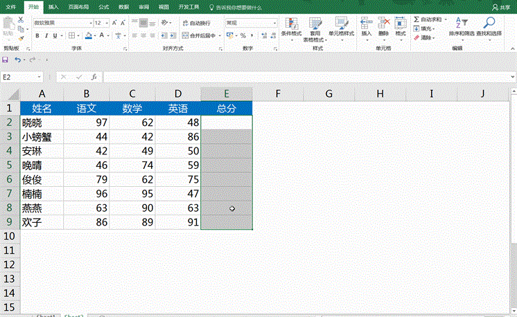 选择要求和的数据区域,按快捷键Alt+= 可实现快速求和效果