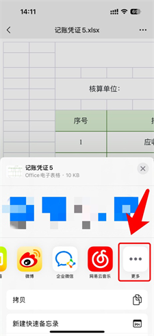 2.在右上角选择「更多」按钮,并点击“用其他应用打开”;