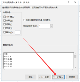 “文本分列向导”第2步