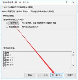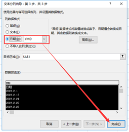 到第三步也就是最后一步的时候,要选择输出格式啦!选择“日期”单选框,然后单击右下角的“完成”按钮