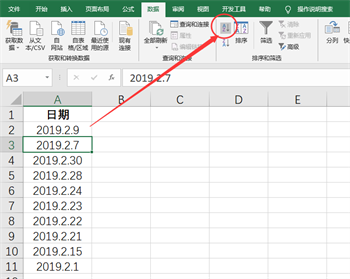 假的终归是假的,不可能跟真的一样,那么假日期给我们带来的“伤害”都有哪些呢?首先它无法进行正确的排序,如下图所示,选择A列任意单元格,切换至“数据”选项卡,选择“排序和筛选”选项组中的“升序”命令