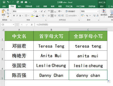 案例2:快速将下图工作表B列英文姓名的字母全部变成小写字母