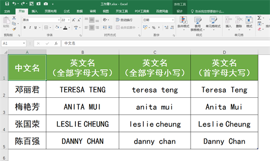 我们在Excel工作表中可能会用到3种英文显示形式:全部字母大写、全部字母小写、首字母大写。下面我们通过3个案例讲解一下如何快速在不同英文显示形式之间进行切换。