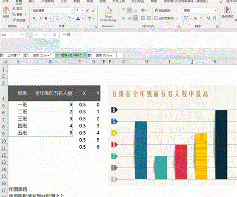 最佳答案今天我们就来分享一下他的制作方法:柱形图制作方法很简单,此处不做过多的赘述。班级全年级前五名的人数一班5二班2三班3四班4五班6选中数据,插入柱形图即可。不过为了让阴影大小更加协调这里采用分组选取数据:完成之后对柱形图进行阴影设置,阴影图片可根据图形添加效果进行制作,也可以网络上搜索。()改变形状的......