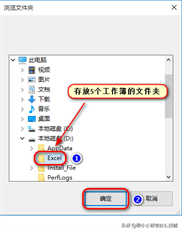 3、点击“浏览”按钮之后 — 弹出“浏览文件夹”对话框 — 选择工作簿所在的文件夹 — 点击“确定”按钮。
