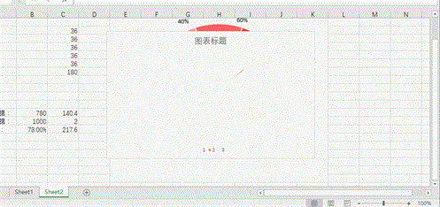 建立好了指针“数据模型”后,就可以插入饼图了,同样旋转270度。然后将数据2以外的饼图都设置为无填充。注意看动图操作: