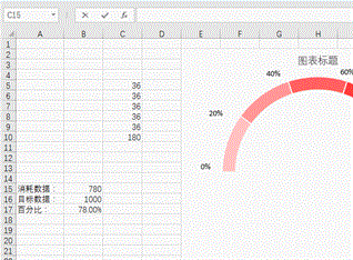 首先建议如下A15:B17区域,780表示实际使用数据,1000为目标数据,B17为所在百分比。
