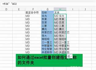 最佳答案依然是直入主题。首先创建一个excel文件,打开工作簿,在表格中输入需要的指定名称。在上图中作者添加了命令符和文本两列,为了更直观地理解它的含义。然后在固定命令符列下输入“MD”,这是创建文件夹的系统命令符,大家只需记住即可!然后使用公式连接固定命令符和名称,即=F2&” ......