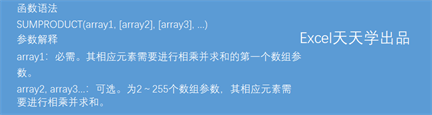 array2, array3…:可选。为2~255个数组参数,其相应元素需 要进行相乘并求和。