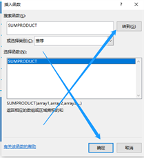首先—–公式—–插入函数—–输入函数名SUMPRODUCT函数—-点击转到—-点击确定