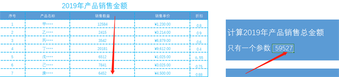 我们的例子是要求2019年底总销售额,但我们提供的数据只有销售数量和单价,理论上来说,销售数量乘以单价然后在相加就是2019年度总销售额。