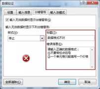 ②同时,设置出错警告,根据前期测试常见的错误,提示使用者修改录入的错误的内容。